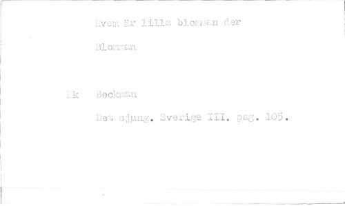 //// Hvem är lilla blor Man der //// Blomman //// k Beckman //// Det sjung. Sverige 111. pag. 105.