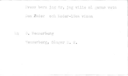 //// Hvems barn jag är, jag ville så gema veta Den Fader och Rbder-lösa visan //// Lk G. Weimerberg //// "femierberg, S&nger II. 2,