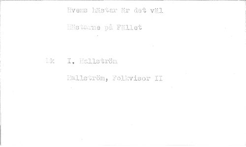//// Hvenis Mst sr är det väl Uästame på Fället //// I. Hallström Hallström, Folkvisor II