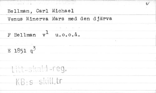 //// ! //// /Bellman, Carl Michael //// Venus Minerva Mars med den djärva //// F Bellman v^ u.o.o.å. //// E 1851 q- //// . i reg. //// 1(B:S s^iuLtr
