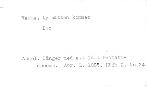 //// i //// ) //// Verka, ty natten kommer D:o //// Andel. Sånger med ett lätt Guitarr- //// accomp. Abr. L. 1885. Häft 2. No 24