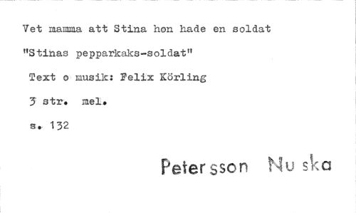 //// Vet mamma att Stina hon hade en soldat "Stinas pepparkaks-soldat" //// Text o musik: Felix Körling 3 str. mel. s. 132