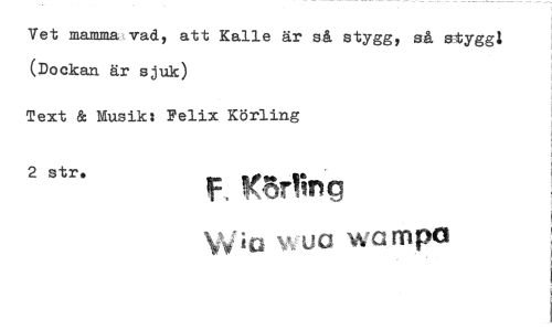 //// Vet mamma vad, att Kalle är så stygg, så styggi (Dockan är sjuk) //// Text & Musik: Felix Körling