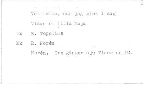 //// Vet mamma, när jag gick i dag Visan om lilla Maja Z. Topelins R. Norén //// Norén, Tre gånger sju Visor no 10.