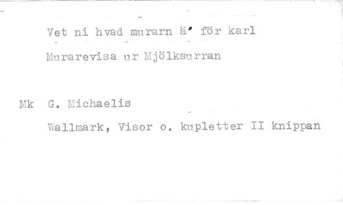 //// Vet ni hvad murarn ä' för karl Mura re vi sa ur Mjölksurran //// G. Nichaelis //// 'Vallmark, Visor o. kupletter II knippan
