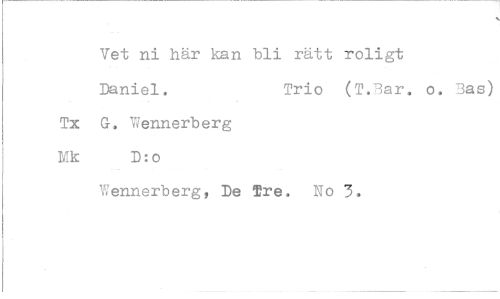//// Vet ni här kan bli rätt roligt Daniel. Trio (T.Bar. o. Bas) //// Tx G. Wennerberg Mk D:o //// Wennerberg, De Tre. No 3.
