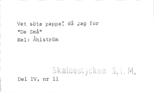 //// ; Vet söta pappa! då jag for "De Små" //// i o //// Mel: Ahlstrom //// ! //// ! //// Ska^es^J^n 3, i.M, //// Del IV, nr 11