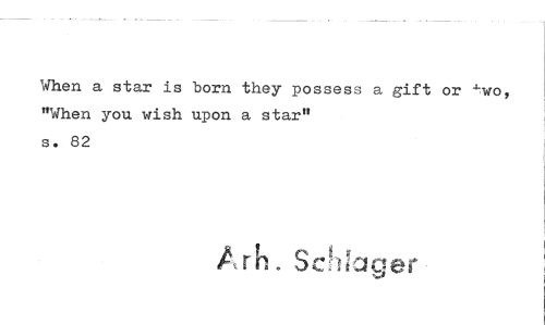 //// When a star is bom they possess a gift or ^wo, "Vhen you wish upon a star" s. 82 //// Arh. Schlager