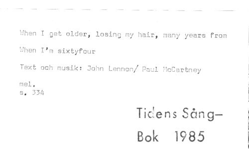 //// '..'hen I get older, losing my hair, many years from When I*m sixtyfour //// Text och musik: John Lennon/ Paul "IcCartney //// mel, s. 334 //// Tidens Sång-