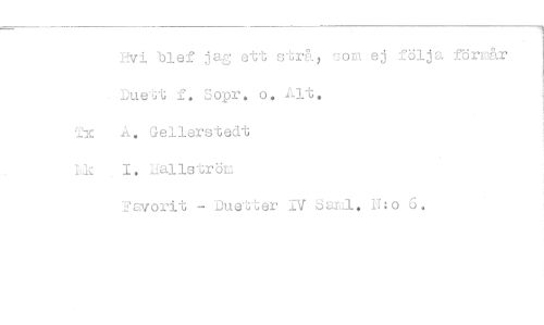 //// Hvi blef jag ett strå^ Tom ej följa förioår //// Duett f. Sopr. o. Alt. Tx A. Gellerstedt H: I. uallströE //// Favorit - Duetter IV Sami. II:o 6.
