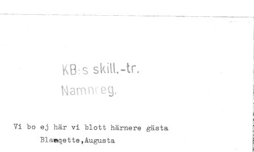 //// H8:s skiH.-tr. Manin! eg. //// Vi bo ej här vi blott härnere gästa Blaaqette,Augusta