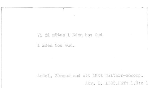 //// J //// Vi få mötas i Rden hos Gud I Eden hos Gud. //// Andel. Sånger med ett lätt Guitarr-accomp. //// ^br. L. l;J85.I-ä.ft l.lf:o 1
