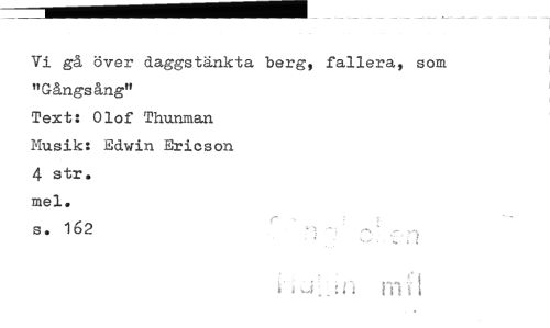 //// Vi gå över daggstänkta berg, fallera, som "Gångsång" //// Text: Olof Thunman Musik: Edwin Ericson 4 str. mel. //// s. 162 n *! //// _!<i