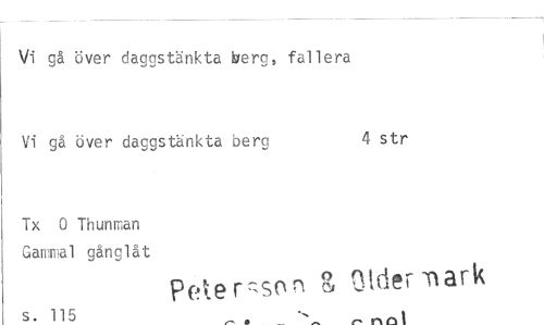 //// Vi gå över daggstänkta &erg, fallera //// Vi gå över daggstankta berg 4 str //// Tx 0 Thunman Gammal gånglåt //// s. 115 //// Pcter-sf n R Cider'"ark