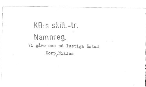 //// KB:s skiH.-tr. Namnreg. //// Vi gåvo oss så lustiga åstad Korp^Niklas