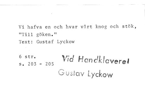 //// Vi hafva en och hvar vårt knog och stök, "Till göken." //// Text: Gustaf Lyckow //// Lyckow