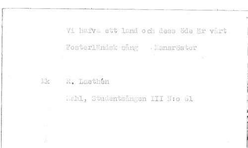 //// Vi hafv^ ett land o ch dess öde är B'osterländsk sång - Mansröster //// R. Laeth&n //// ...cl'1, Studentsången 111 N:o 61