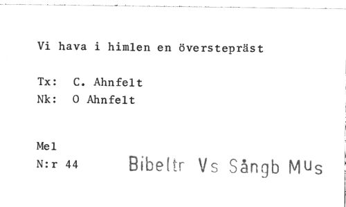 //// Vi hava i himlen en överstepräst //// Tx: C. Ahnfelt Nk: 0 Ahnfelt //// Mel //// N:r 44 Bibettr Vs Sångb