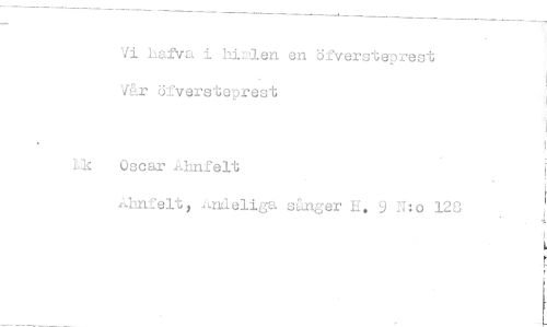 //// Vi hafva i hirlen en öfversteprest //// Vår ofversteprest //// ..k Oscar Ahnfelt //// Ahnfelt, .Aixleliga sånger H. 9 N:o 128