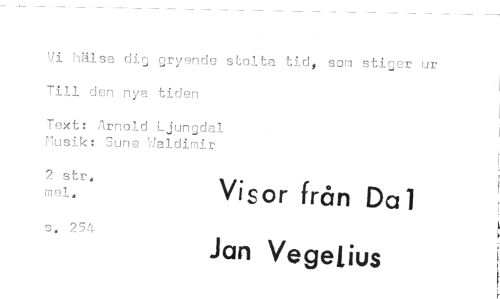 //// Vi hälsa dig gryendo stolta tid, som stiger ur //// Till den nya tiden //// Text: .Irnold Ljungdal 'lusik: Sune ',,'aldimir //// 2 str. //// mel, //// 3. 254 //// Jan Vegeiius