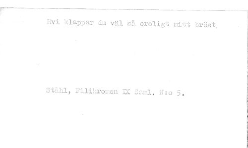 //// Hvi klappar du väl s& oroligt mitt bröst. //// 3tåhl, Filikromen IX Sr.rl. H:o 5.