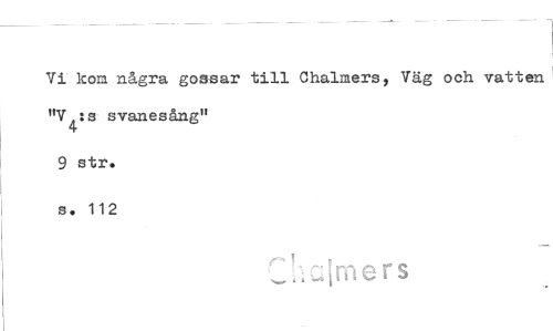 //// Vi kom några gossar till Chalmers, Väg och vatten "V^:s svanesång"