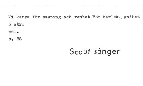 //// Vi kämpa för sanning och renhet För kärlek,^ godhet 5 str. mel. s. 88 //// Scouf sånger
