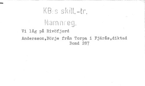 //// K8:s skiM.-tr. //// Mamnreg. //// Vi låg på Rivöfjord //// Andersson,Börje från Torpa i Fjärås,diktad //// Bond 287