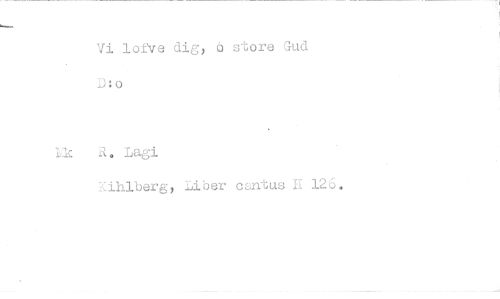 //// Vi lofve dig, ö store Gud //// D: o //// R. Lagi //// Kihlberg, Liber c entus II 126.