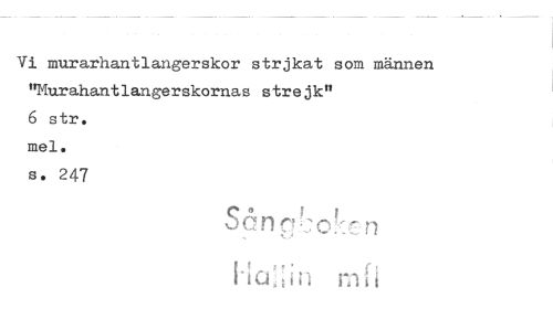 //// Vi murarhantlangerskor strjkat som männen "Murahantlangerskornas strejk" //// 6 str. mel. s. 247