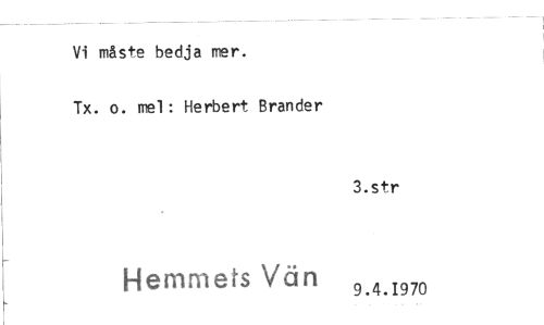 //// Vi måste bedja mer. //// Tx. o. mel: Herbert Brander //// 3.str