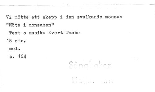 //// Vi mötte ett skepp i den svalkande monsun "Höte i monsunen" //// Text o musik: Evert Taube //// 18 str. mel. s. 164
