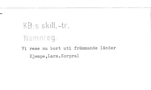 //// KB:S sMt.-tr. //// Mamnreg. //// Yi rese nu bort uti främmande länder K j empe,Lars.Korpral