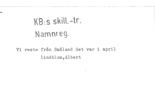 //// KB:S skiH.-tr. Mamnreg. //// Vi reste från Småland det var i april Lindblom,Albert