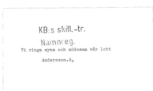//// KB s skiU.-tr. //// 6Q. //// Vi ringa syns och mödosam vår lott Andersson.A,