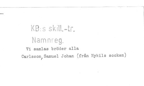 //// K8:s skiH.-tr. Namnreg. //// Vi samlas bröder alla Carlsson,Samuel Johan (från Nykils socken)