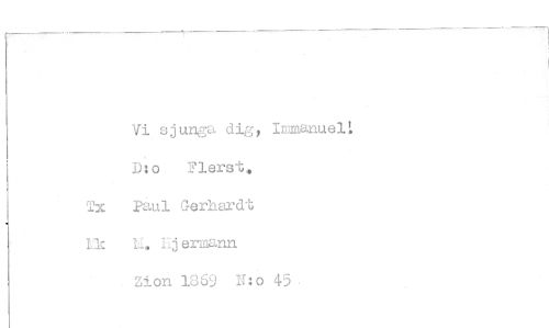 //// Vi sjunga dig, Immanuel D:o Flerst. //// Tx Paul Gerhardt Ik N. nj ermann //// Zion 1869 N:o 45
