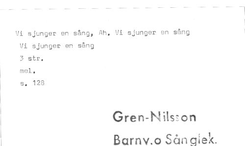 //// Vi sjunger en sång, Ah. Vi sjunger en sång Vi sjunger en sång 3 str. mel, s. 128 //// Gren-Ni!s*on Barrtv.o Sång