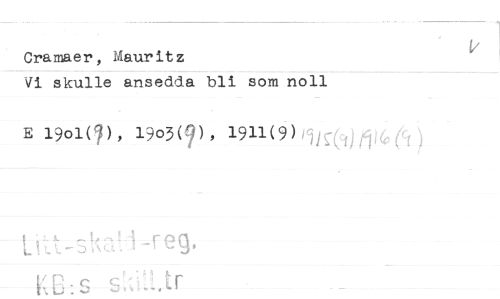 //// Cramaer, Mauritz //// Vi skulle ansedda bli som noll //// E i9oi(^), 1903(^1, 1911(9) ) //// L'-.t-sh?.'.T-re9. //// HC:S s:ull.tr