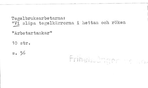 //// Tege lbruksarbe tama: //// "Vi släpa tegelkärrorna i hettan och röken "Arbetartankar" //// 10 str. s. 56