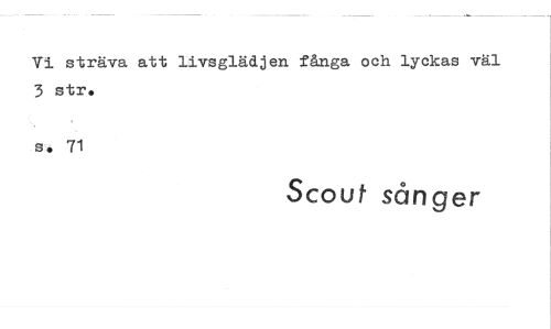 //// Vi sträva att livsglädjen fånga och lyckas väl //// 3 str. //// s. 71 //// Scouf sånger