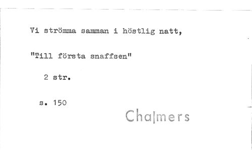 //// Vi strömma samman i höstlig natt, //// "Till första snaffsen" //// 2 str. //// s. 150 //// Chajmers