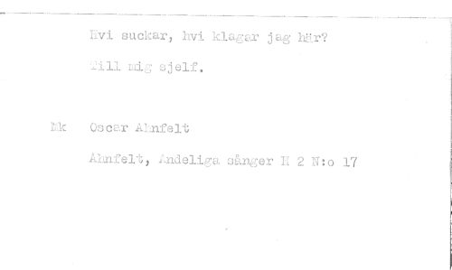 //// Rvi suckar, hvi klagcT jag %',r? //// -ill mig sjelf. //// I.k Oscar Aljnfelt //// Almfelt, Andeliga aånger H 2 N:o 17