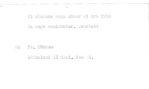 //// Vi sångens unga söner vi dra från De unga musikanter, artett //// Ui Fr. Käcken //// Odinslund II Ssjnl. N:o 16.