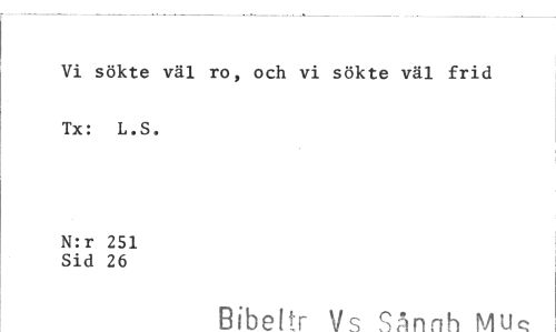 //// Vi sökte väl ro, och vi sökte väl frid Tx: L.S. //// N:r 251 Sid 26 //// Bibeitr Vs Sånnh MU