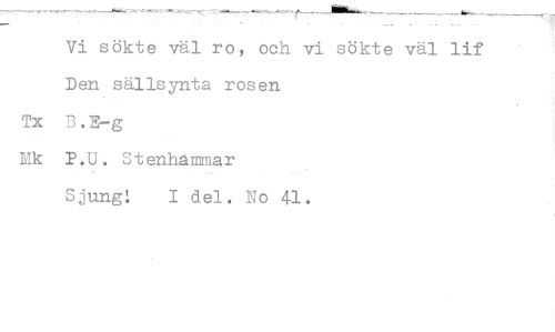 //// Vi sökte väl ro, och vi sökte väl lif Den sällsynta rosen Tx B.E-g //// Hk P.U. Stenhammar //// Sjung! I del. No 41.