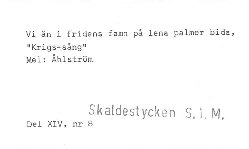 //// Vi än i fridens famn på lena palmer bida, "Krigs-sång" //// Mel: Åhlström //// Skatdestycken S ! M //// Del XIV, nr 8