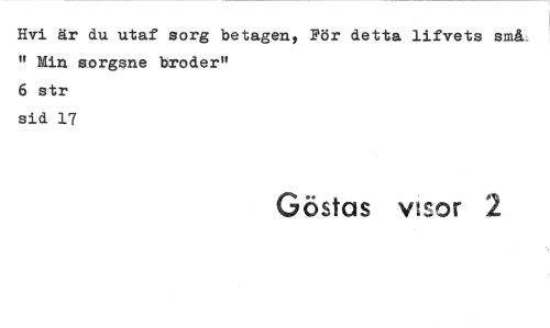 //// Hvi är du utaf sorg betagen, För detta lifvets små; " Min sorgsne broder" //// 6 str sid 17 //// Göstas visor 2