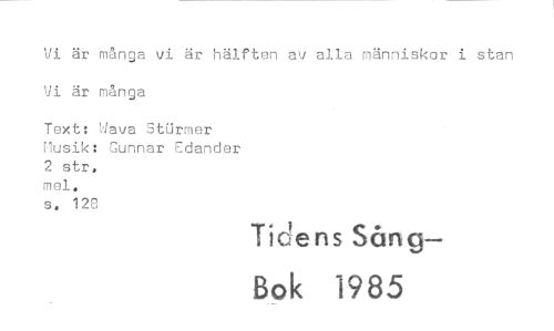 //// Vi är många vi är hälften as/ alla människor i stan //// Vi är många //// Text: Mava Sturmer Musik: Gunnar Edander //// 2 str. mal. //// s. 128
