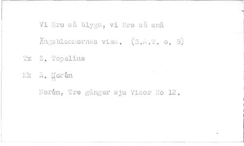 //// Vi äro så blyga, vi äro så små ängsblommornas visa. (j.A.T. o. S. Topelius Ut X. ^orån //// Norån, Tre gånger sju Visor No 12
